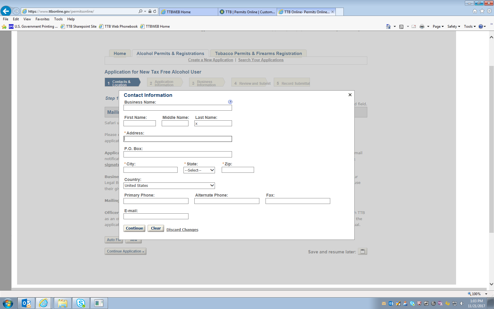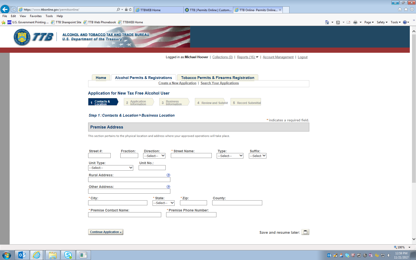 Permits Online (PONL): Application for Tax Free Alcohol Under