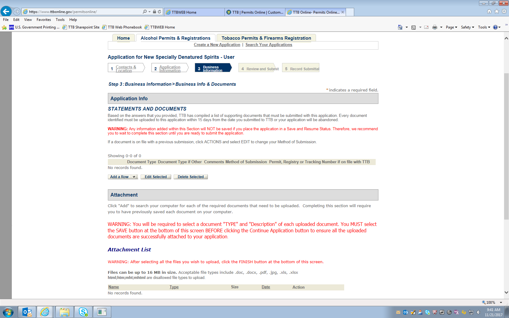 Permits Online (PONL): Application for New Specially Denatured Spirits – User