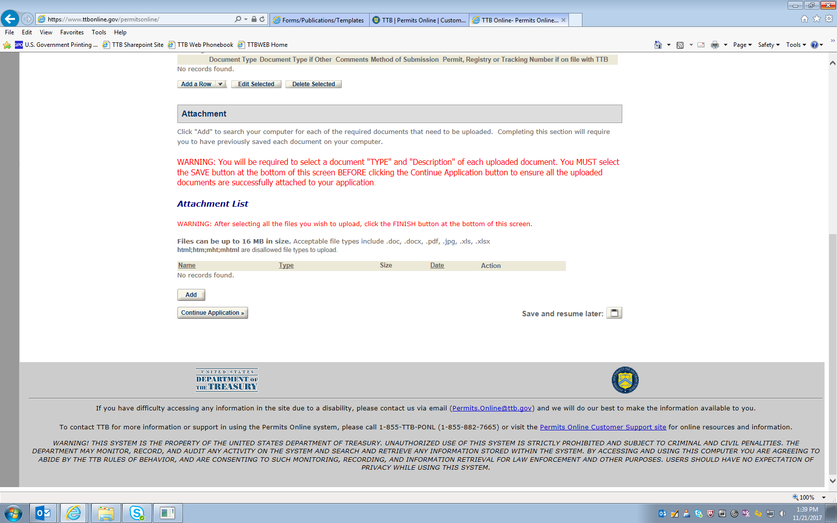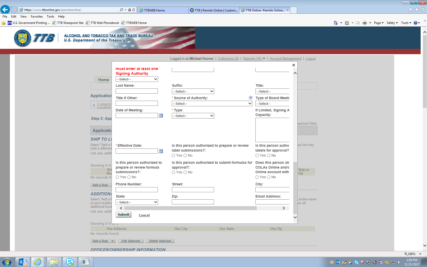 [The screens that follow allow the user to review the submitted information and then submit the completed application to TTB.]