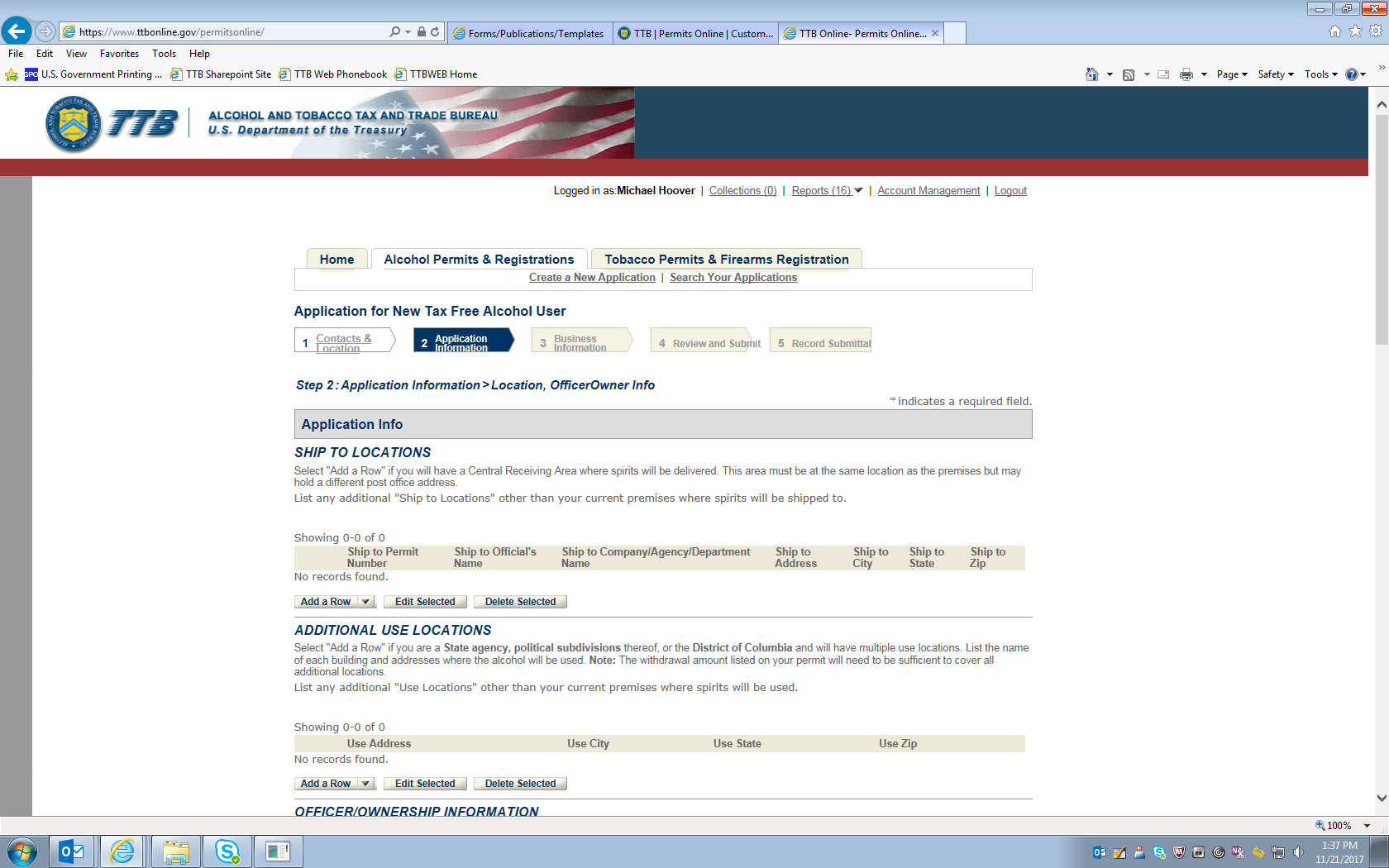 Permits Online (PONL): Application for Tax Free Alcohol Under