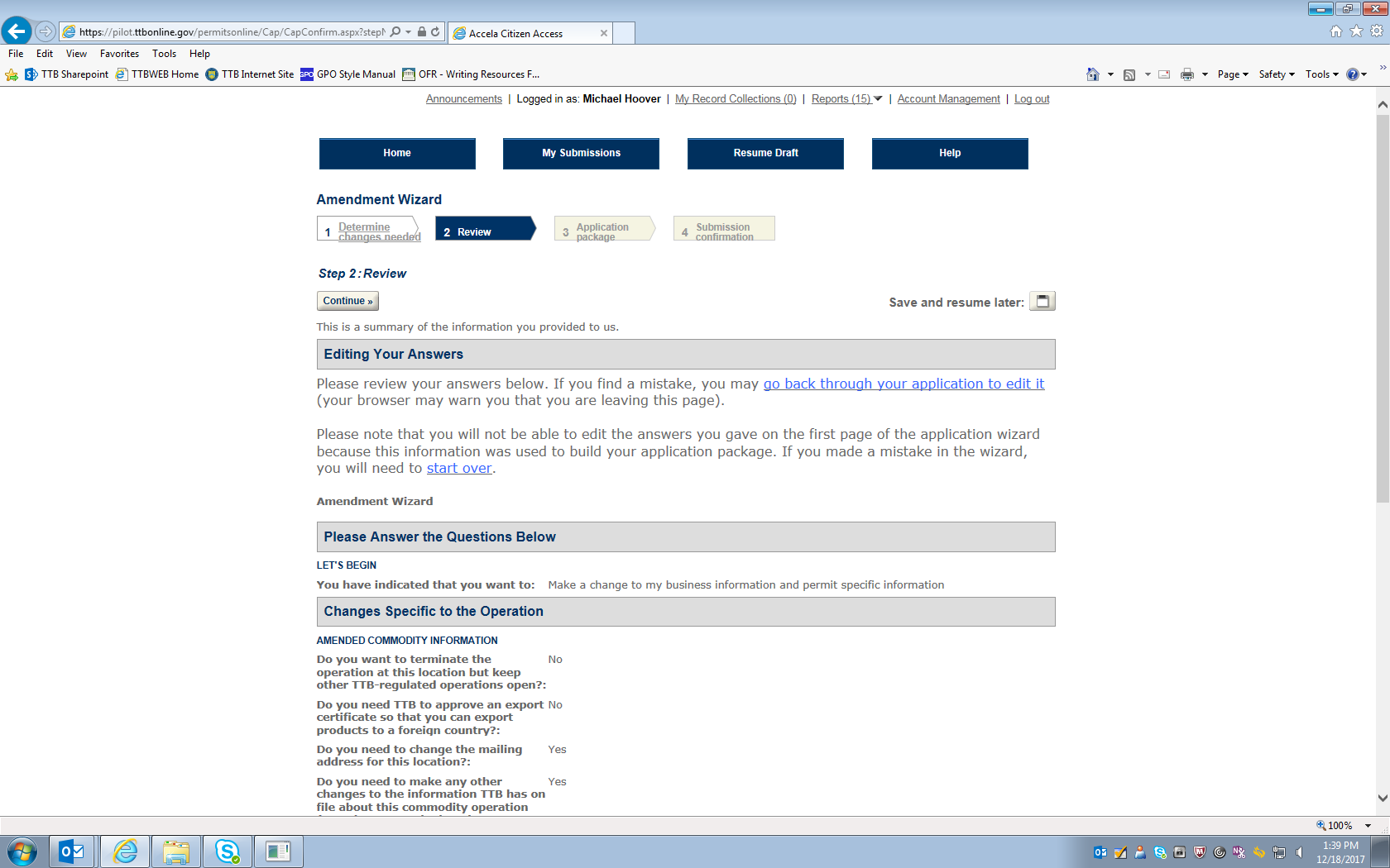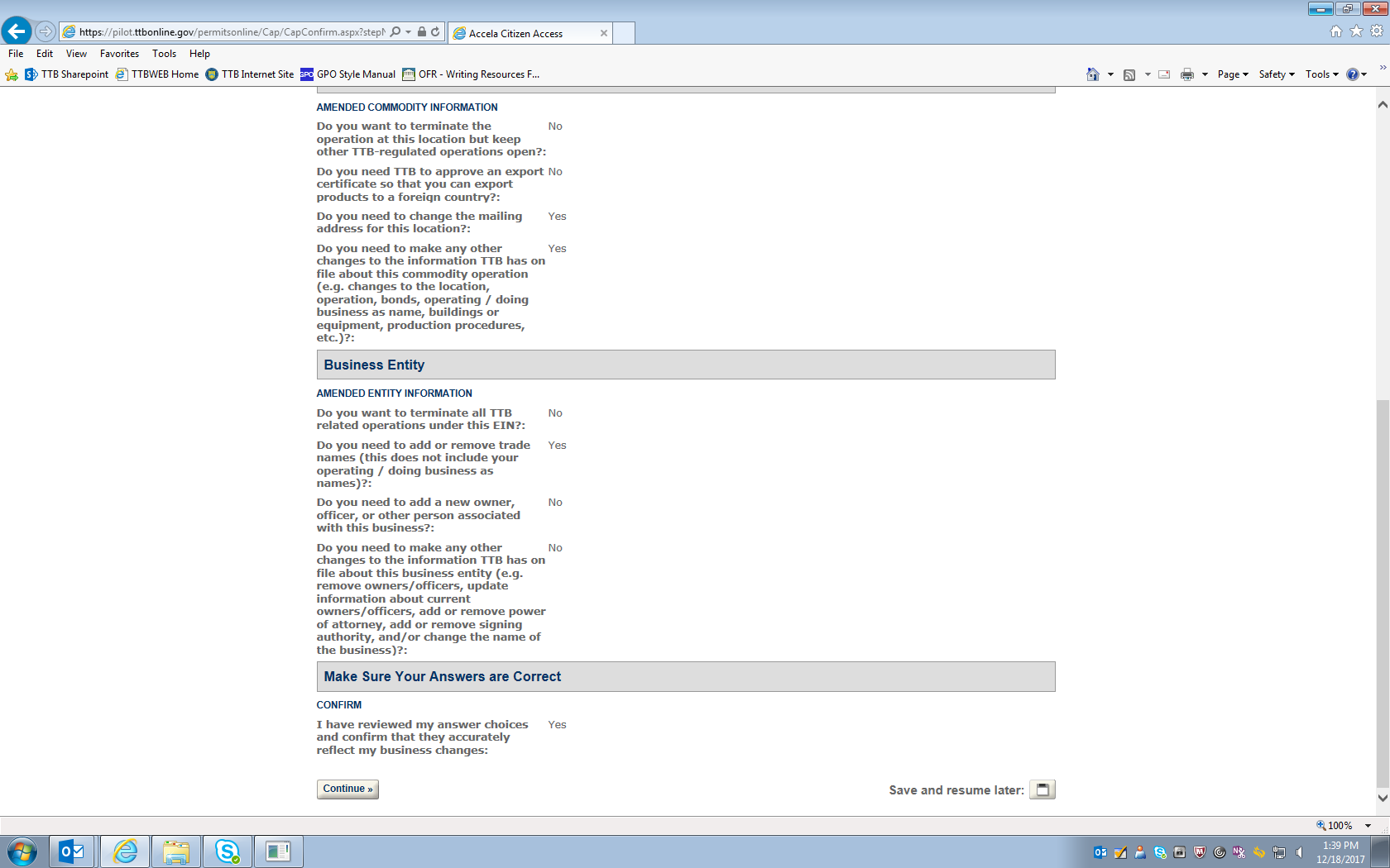 Figure 4 – After reviewing the selected changes (amendments) to be made, the respondent clicks the “Continue” button under the “Make Sure Your Answers Are Correct” heading.