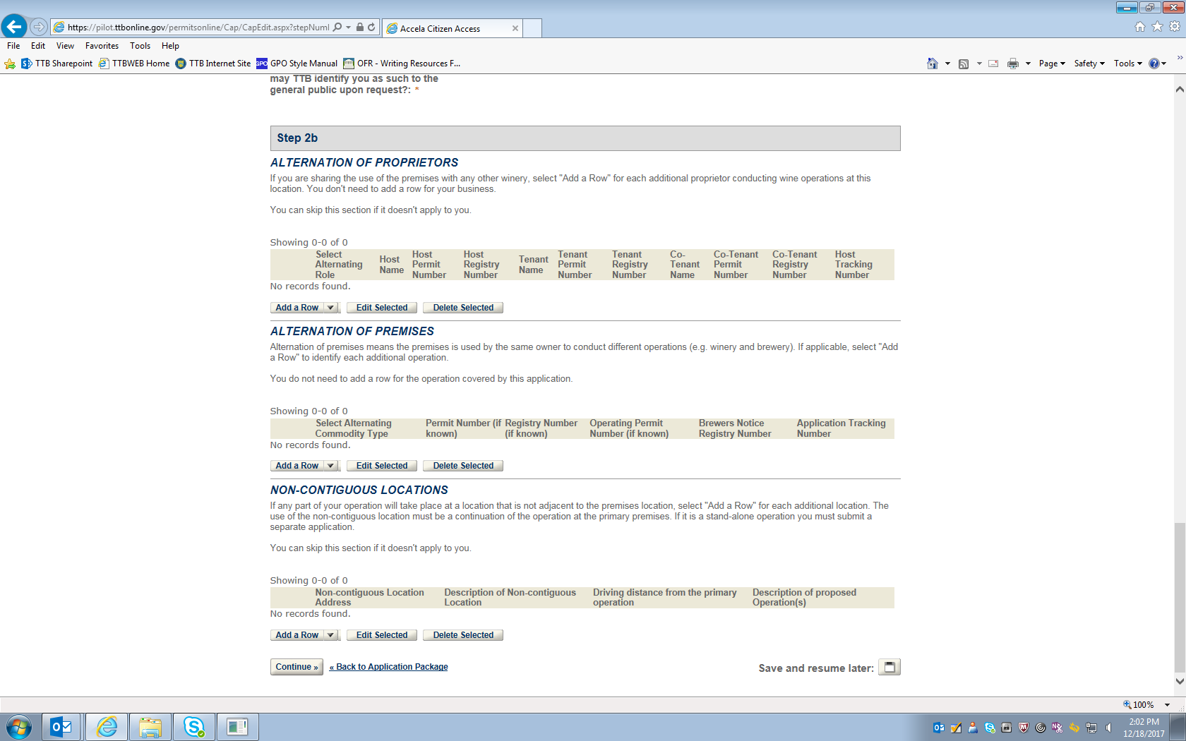Figure 14 – Additional Winery Permit information screen (continues on page below).
