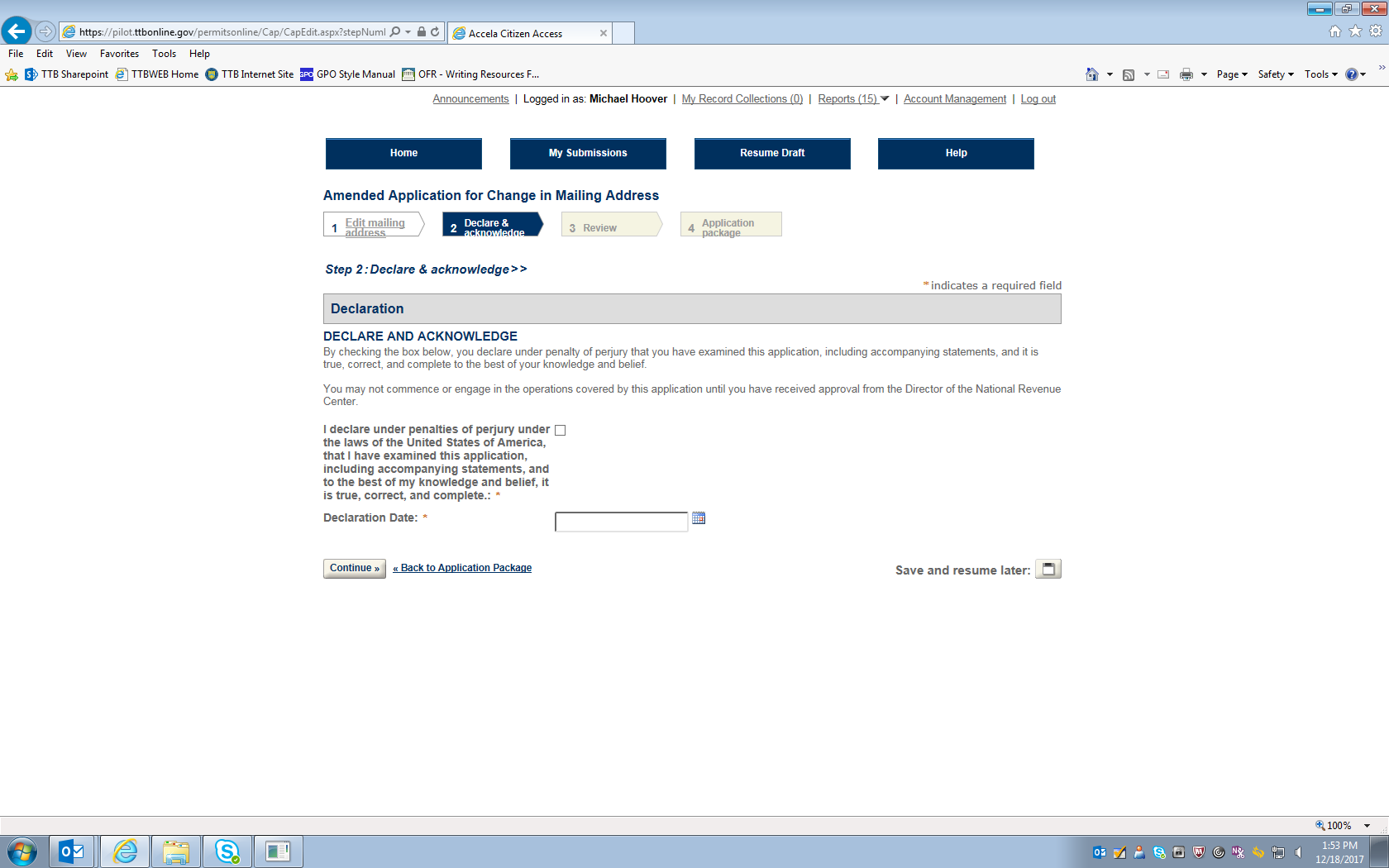 Figure 23 – Screen showing that all basic permit amendment applications are ready to submit to TTB via PONL.