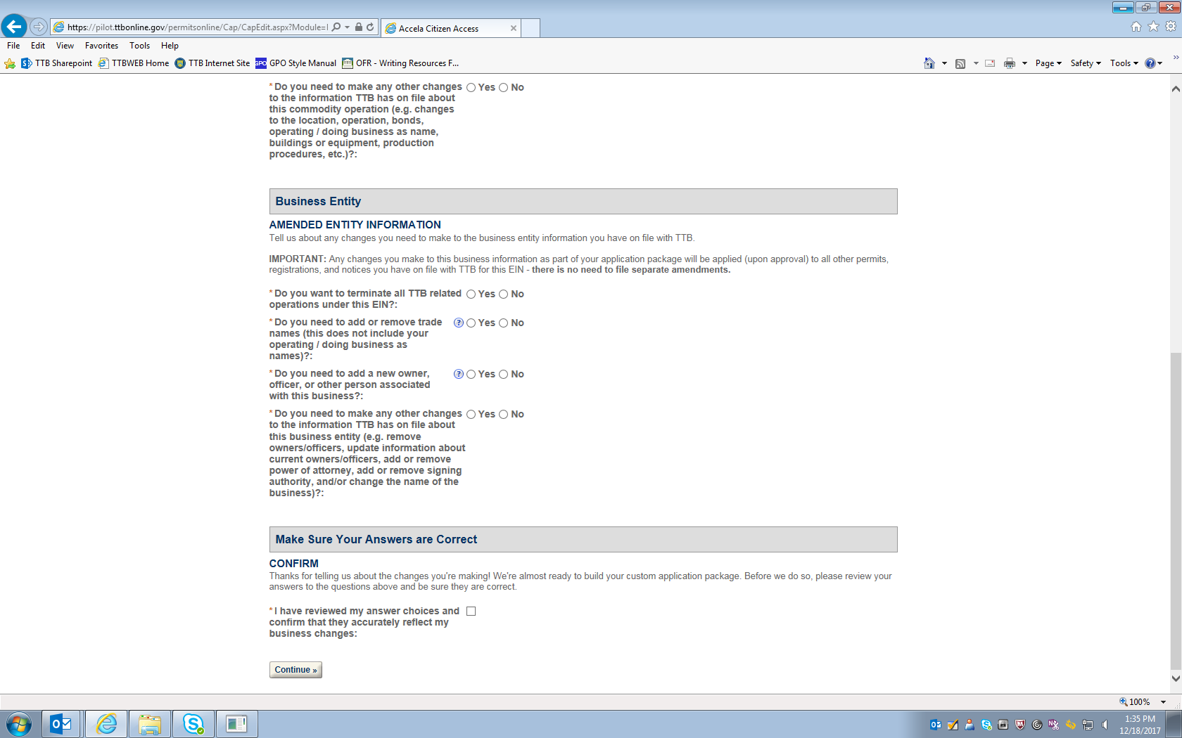 Figure 4 – After reviewing the selected changes (amendments) to be made, the respondent clicks the “Continue” button under the “Make Sure Your Answers Are Correct” heading.