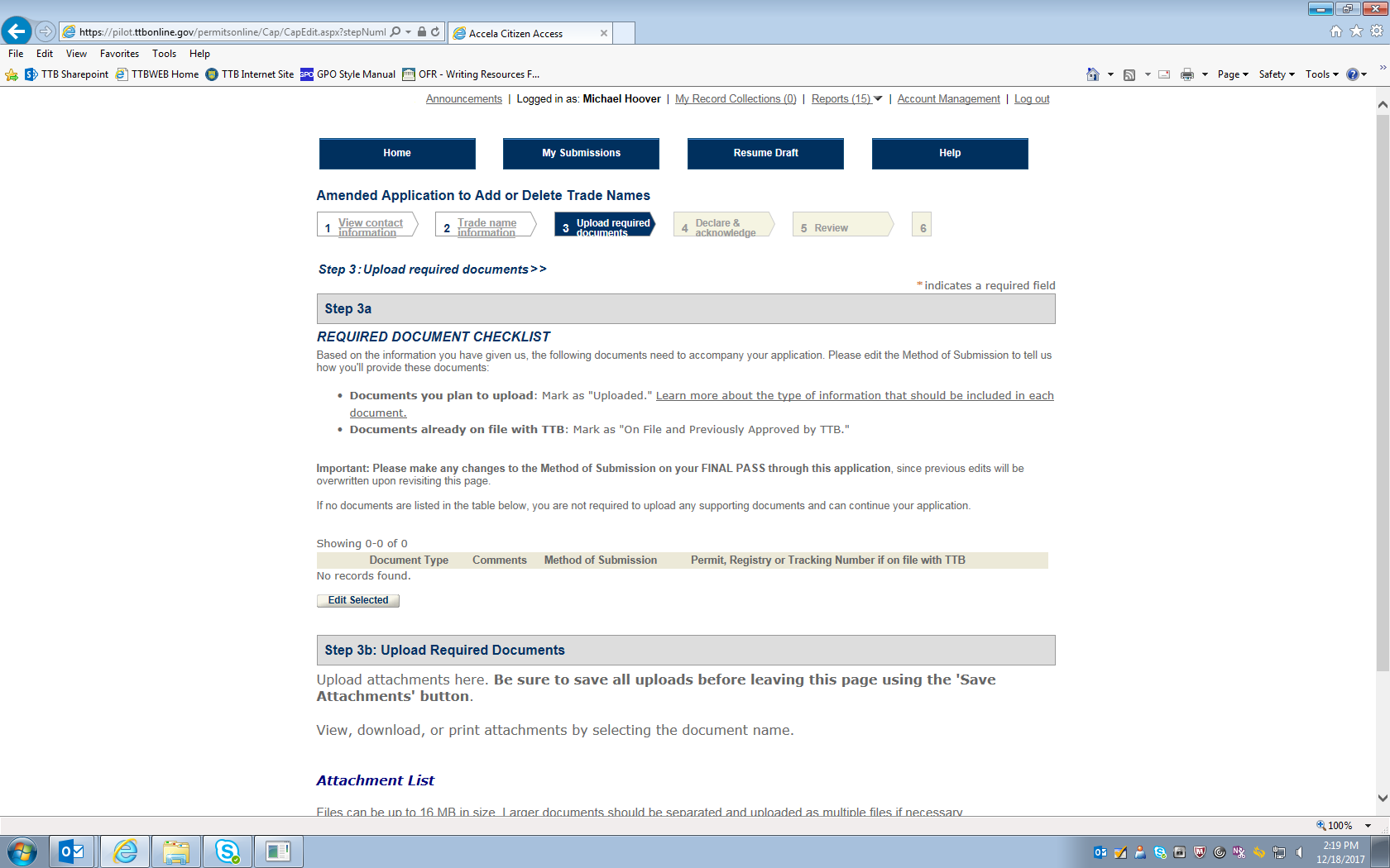 Figure 20 – If any additional documents are required for this application for an amended permit, they are shown here. The respondent uploads the required document(s), which are then listed under “Attachment List” to show that the upload was successful.