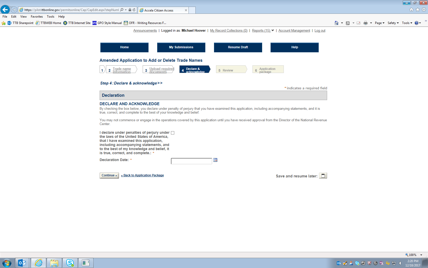 Figure 16 – Declaration page.