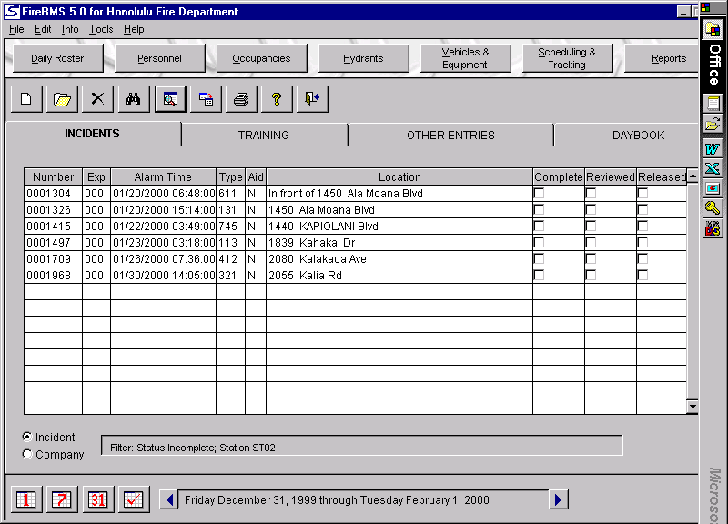 Reviewed: Respective Battalion Chiefs will examine all completed reports generated by his subordinates and check off the “Reviewed” box on all acceptable reports. Unacceptable reports will become available for revisions once the Battalion Chief removes the “Completed” check mark.