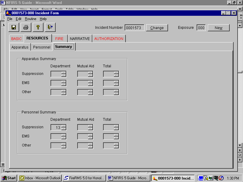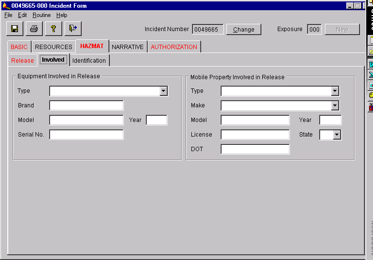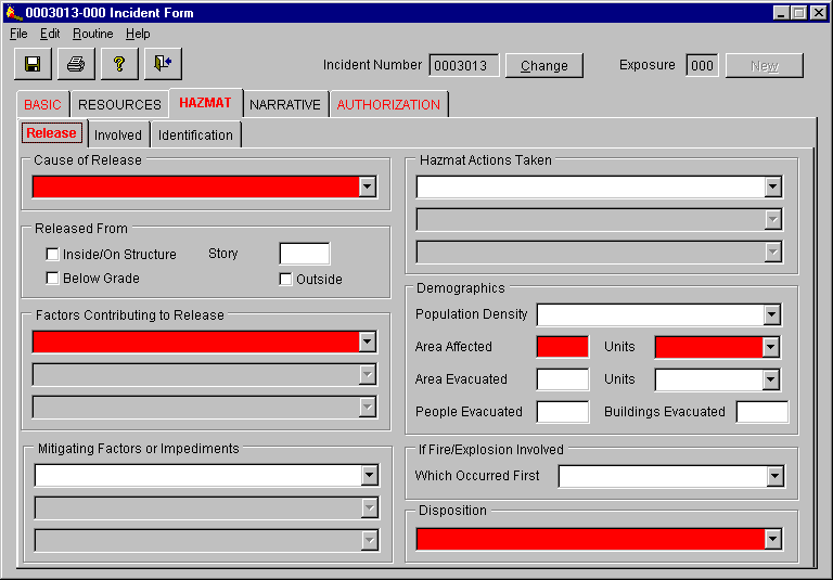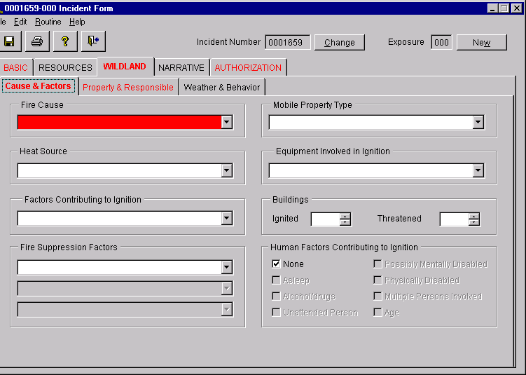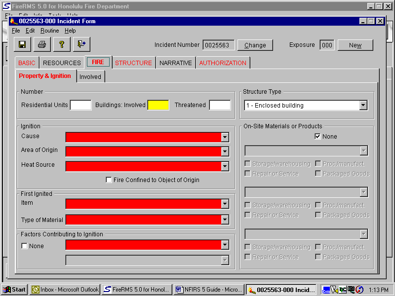 Exposure: Used when there is an exposure fire as a result of the original fire. After finishing the report for the original fire, save and close. Reopen original, click on the “Exposure” button, and say “Yes” to saving the original report number. A report on the exposure fire can now be completed.