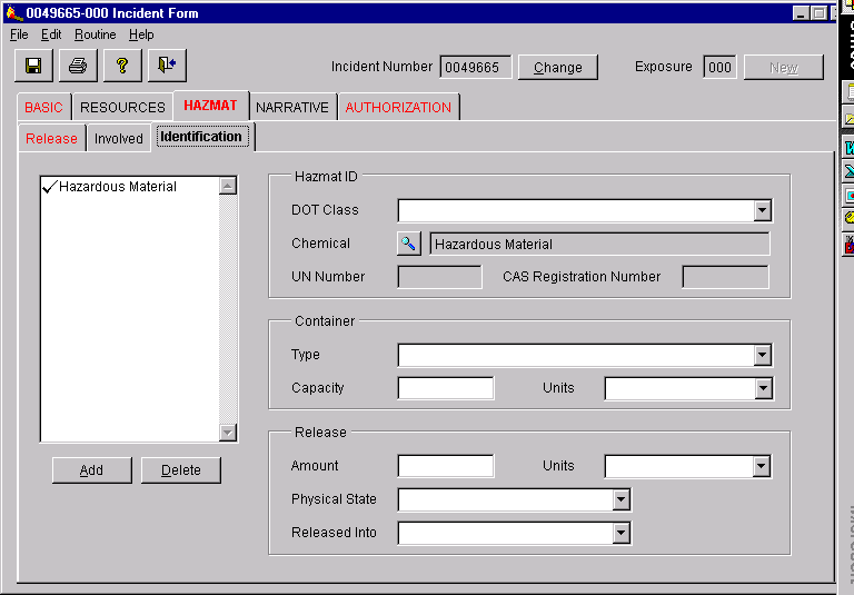 CADS will drop in this information. Make the necessary adjustments when required. This field will populate itself from the Daily Roster. If it doesn’t, click on the “Add” button and insert the appropriate names. Should you need to delete an individual, highlight the name and click on the “Delete” button.