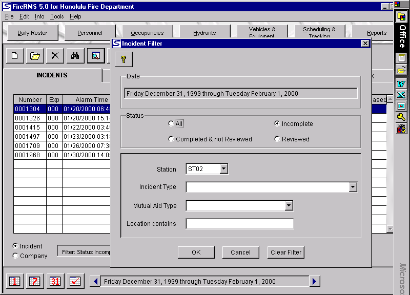 Set the Beginning and End Date Range on the bottom of the window. Set the “beginning date” as 1/1/2000 (start date of NFIRS 5.0) and the “end date” at today’s date.