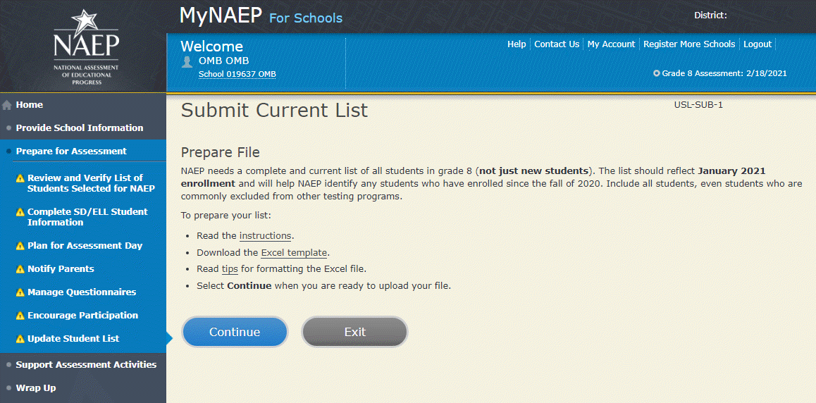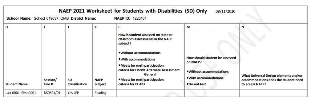 The list will help NAEP identify any students who were not included on the original list submitted in the fall of 2020.
