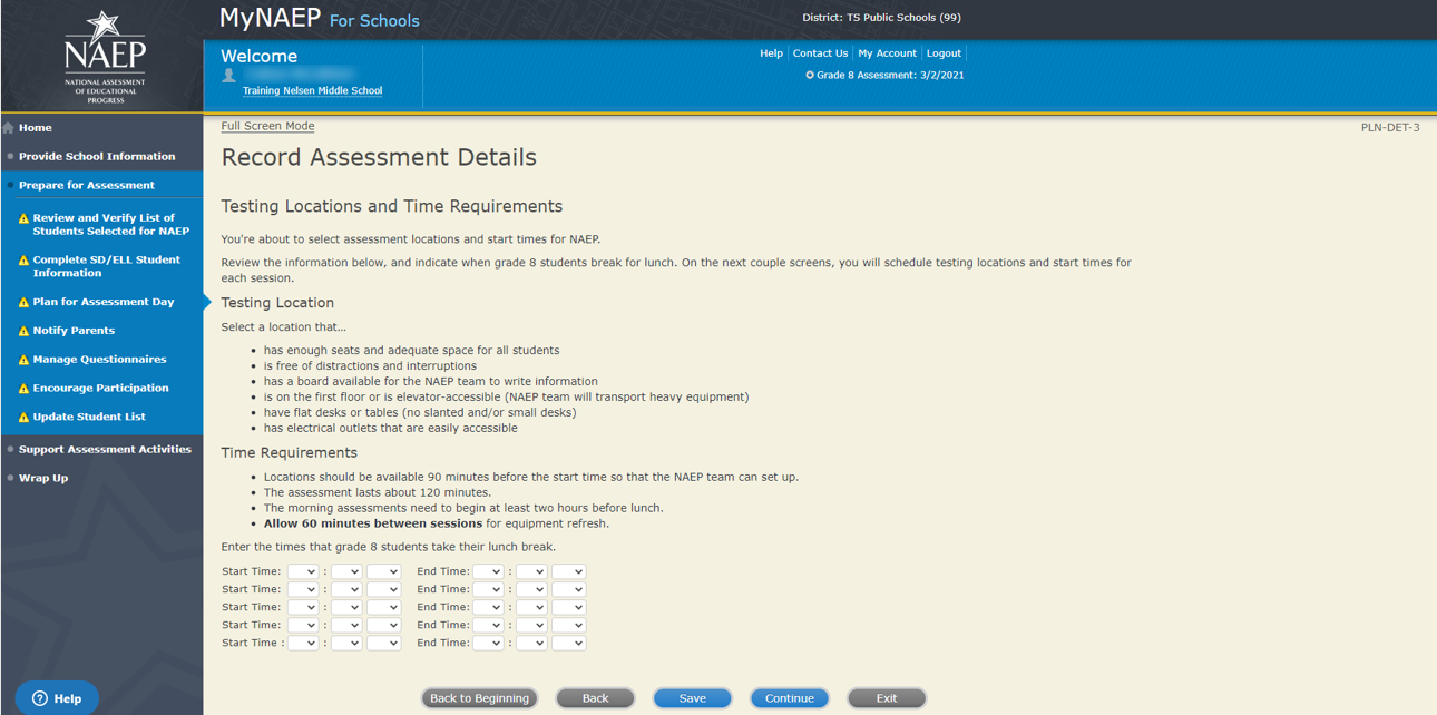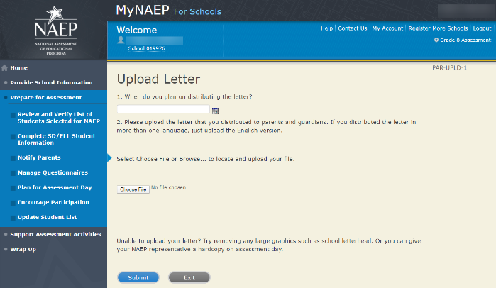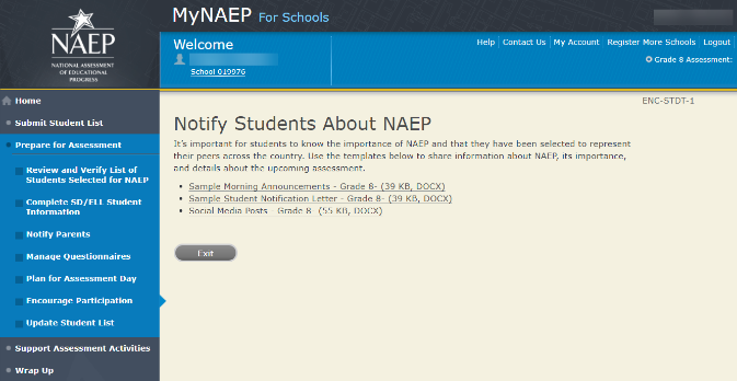 If you need technical assistance contact the NAEP help desk at 1-800-283-NAEP (6237) or NAEPHelp@westat.com