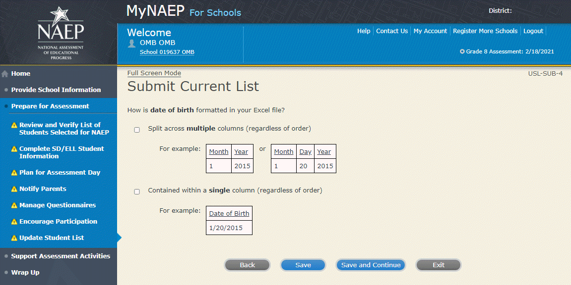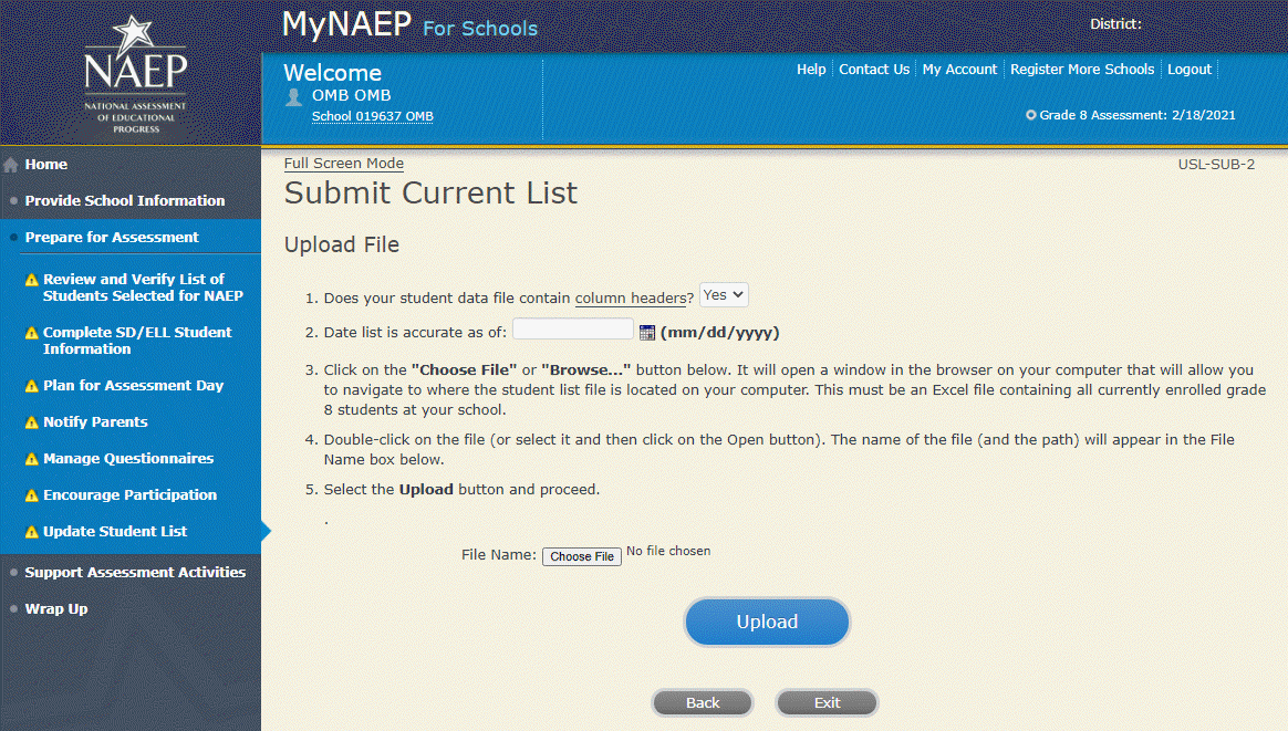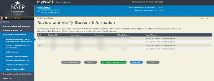NAEP needs a complete and current list of all students in the selected grade(s) (not just new students).