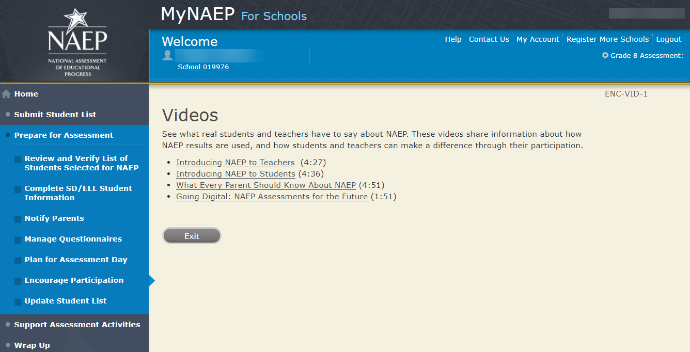 MyNAEP is a restricted-use website that contains information on the National Assessment of Educational Progress (NAEP), widely known as The Nation's Report Card.