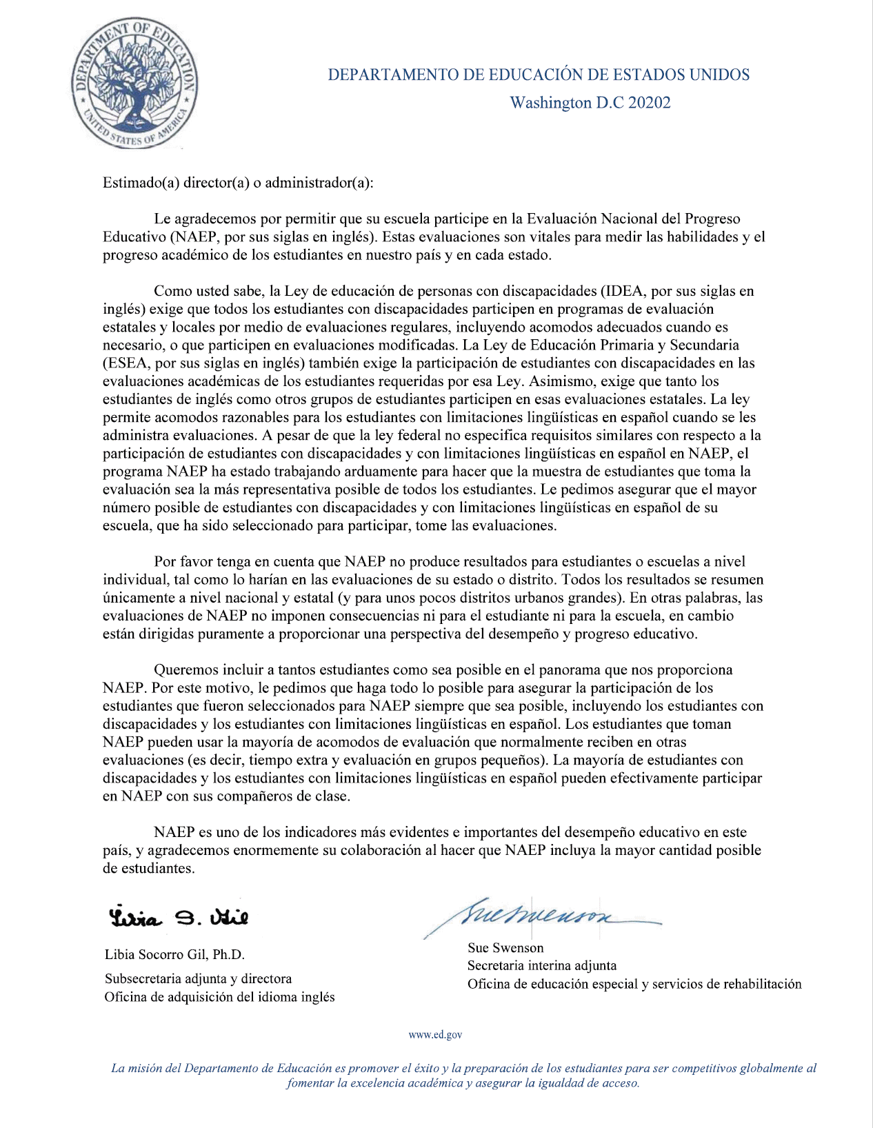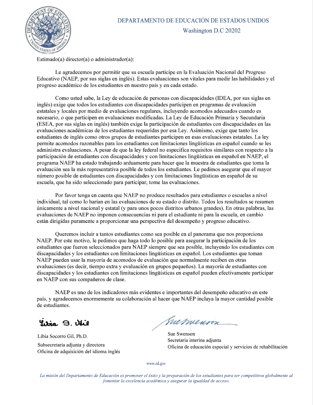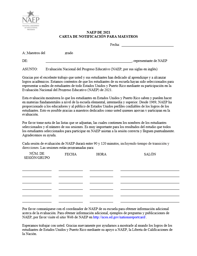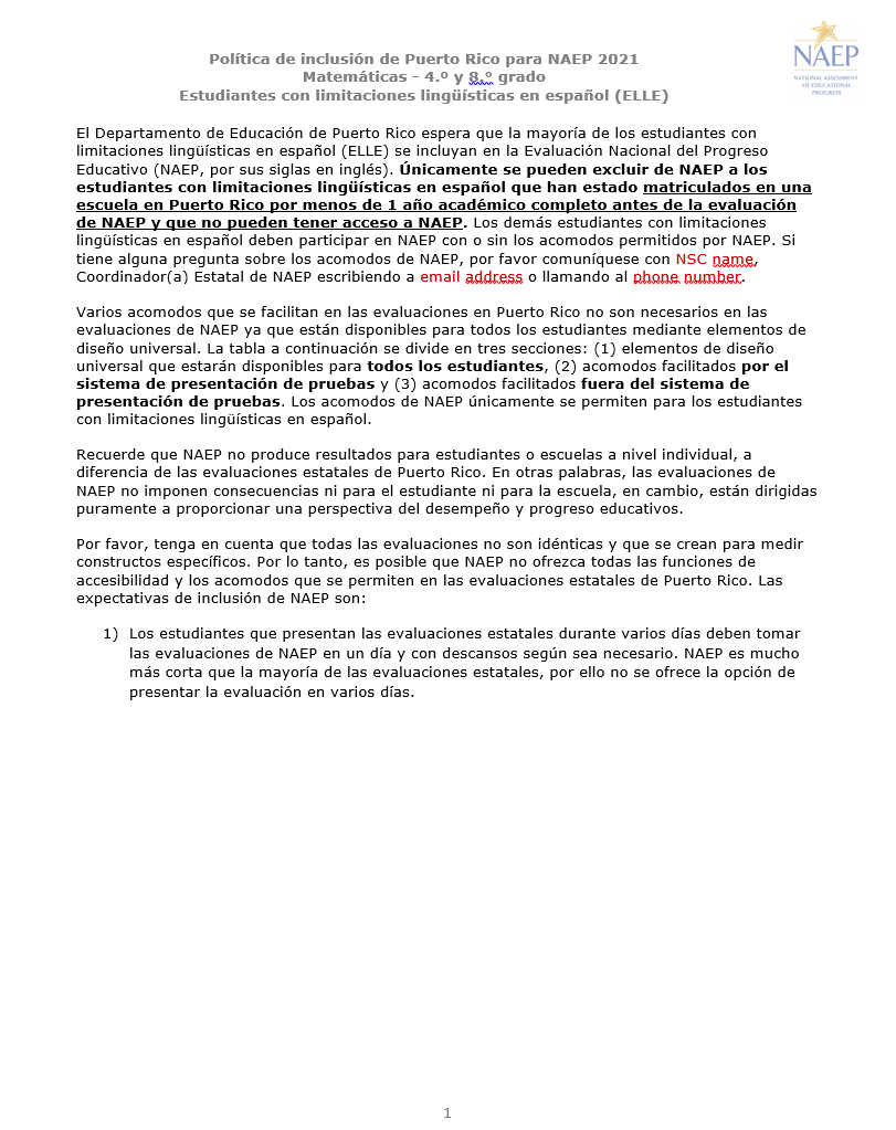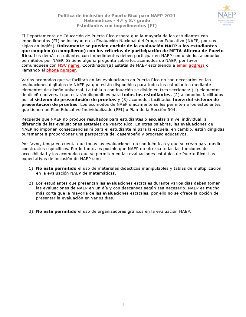 Formulario de estudiantes de Puerto Rico seleccionados para NAEP