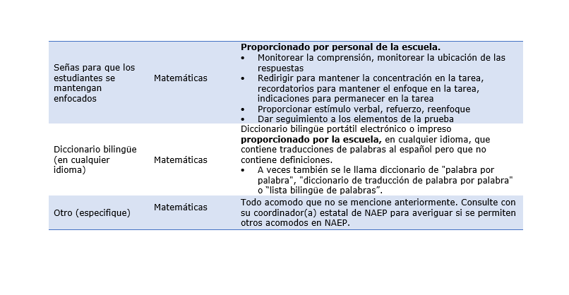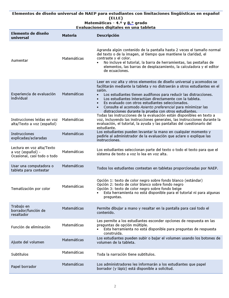Formulario de NAEP para estudiantes con limitaciones lingüísticas en español (ELLE)