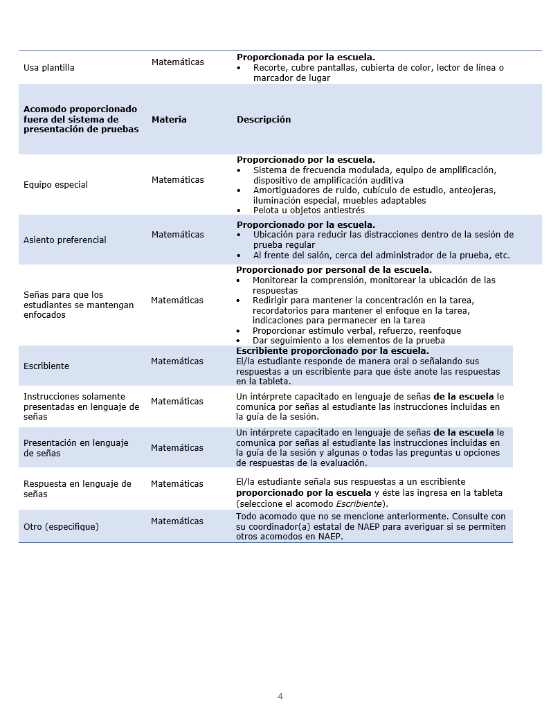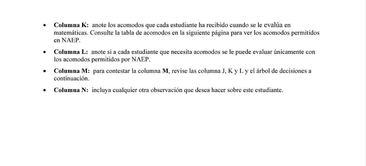 Formulario de NAEP para estudiantes con impedimentos (EI)