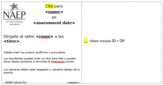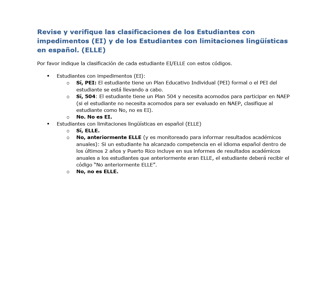 Información necesaria para revisar y verificar los estudiantes seleccionados para NAEP