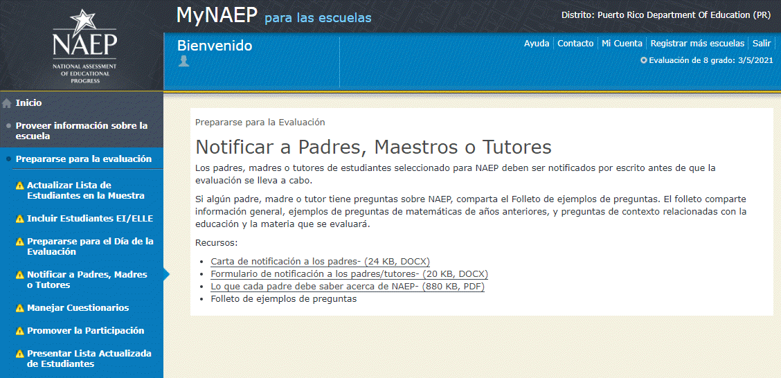 NAEP 2022 Spanish Content of MyNAEP System for Puerto Rico