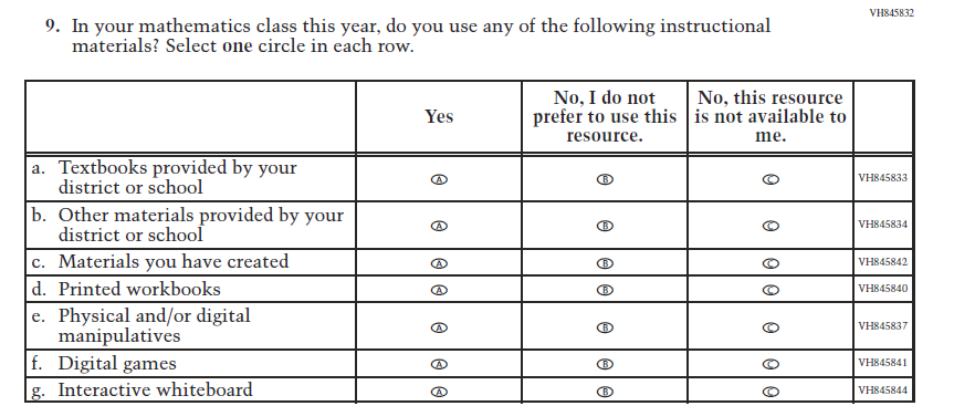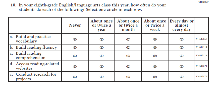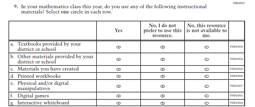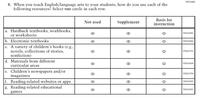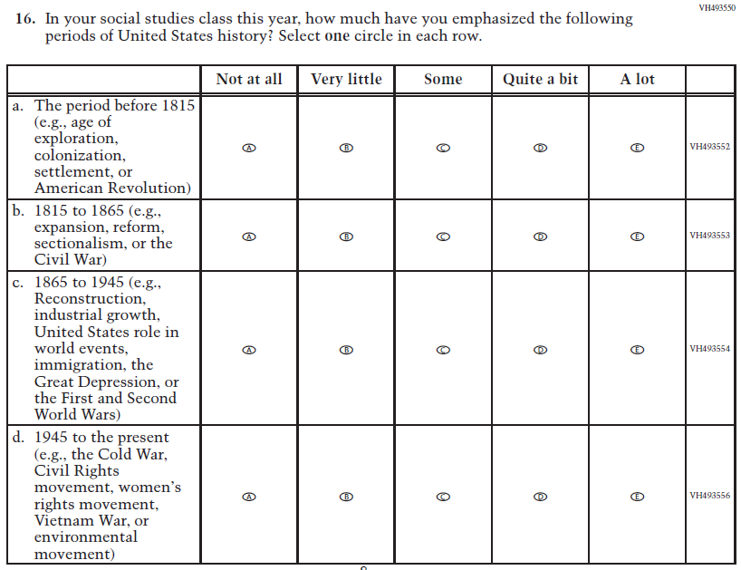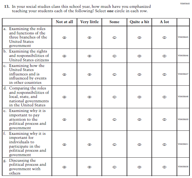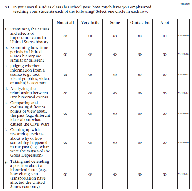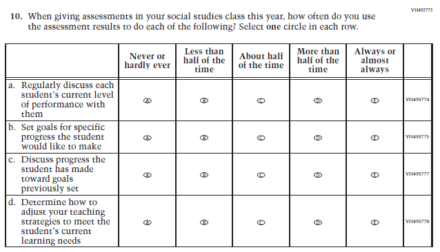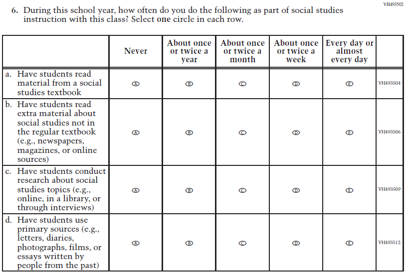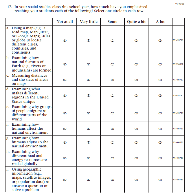 This item is customized by subject and has been revised to remove sub-items for science and expanded to also include sub-items for social studies. |