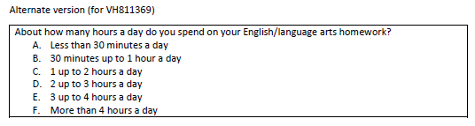(2018 Grade 4, 8, and 12; Appendix F p. 228 alternate version for VH811369) |