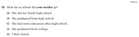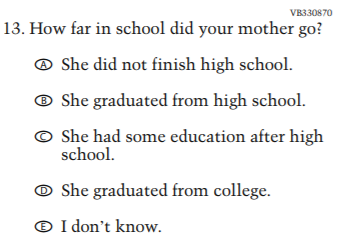 Sample NAEP Questionnaire Cover Page