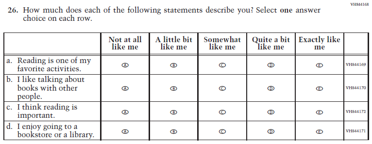 (2015 Grade 4, 8, and 12; Appendix F p. 384 # 6) |