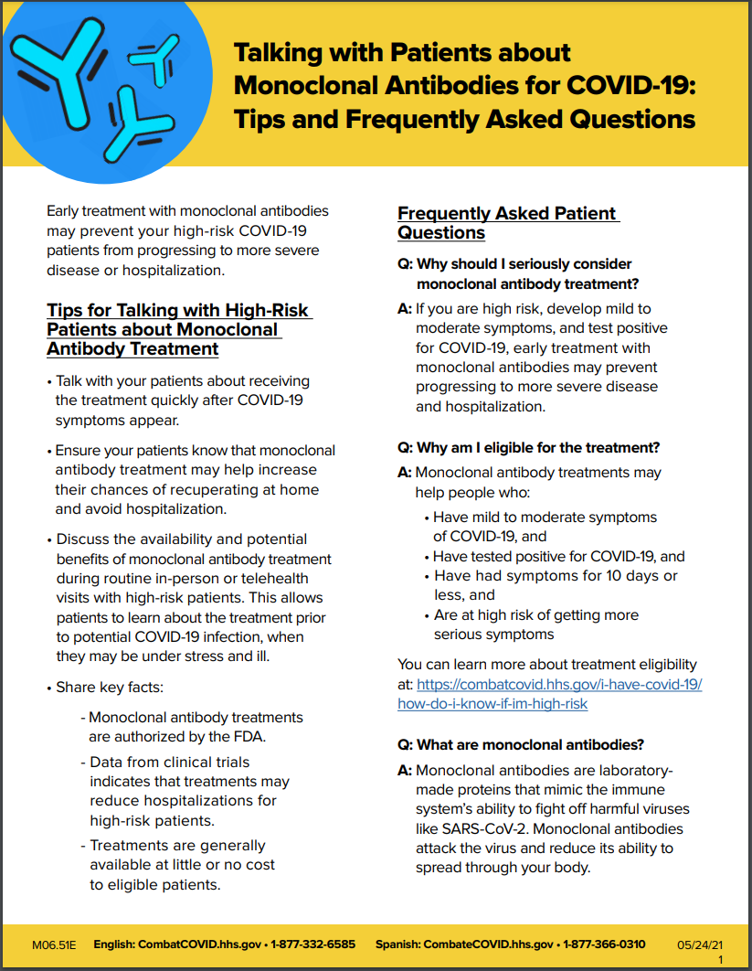 Talking with Patients about Monoclonal Antibodies for COVID-19: Tips and Frequently Asked Questions [CLICK HERE TO REVIEW]