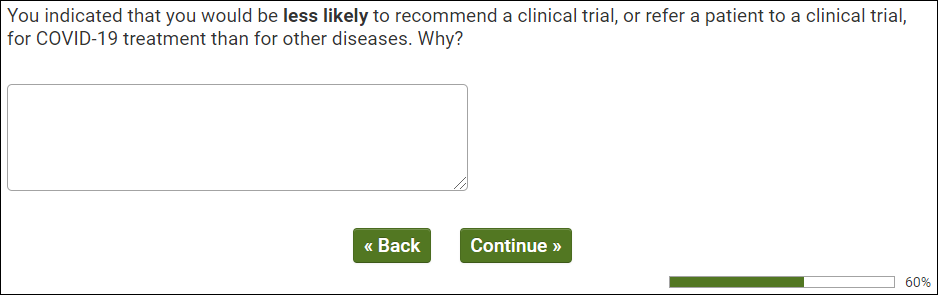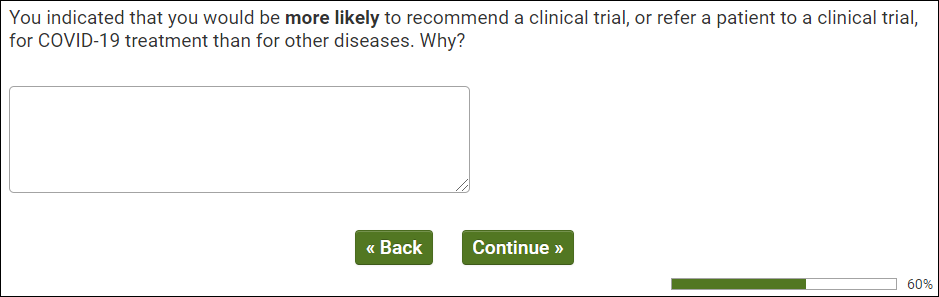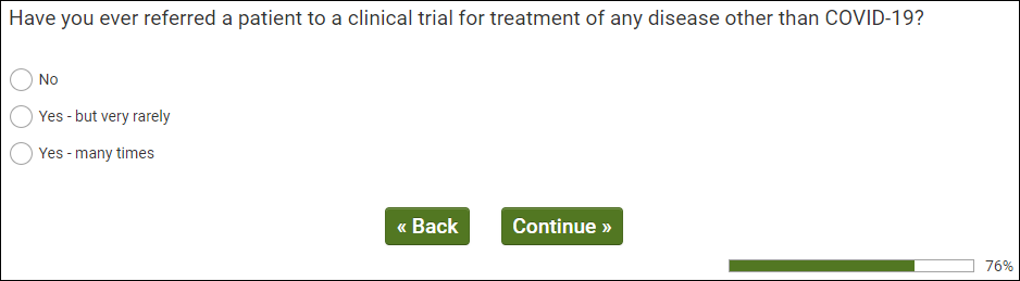 [IF QUALIFIED HCP (Q99/2) AND FAMILIAR (Q100 RATING 3-5) WITH TREATMENT TRIALS (Q100 CARD/2) PROCEED TO Q105.]