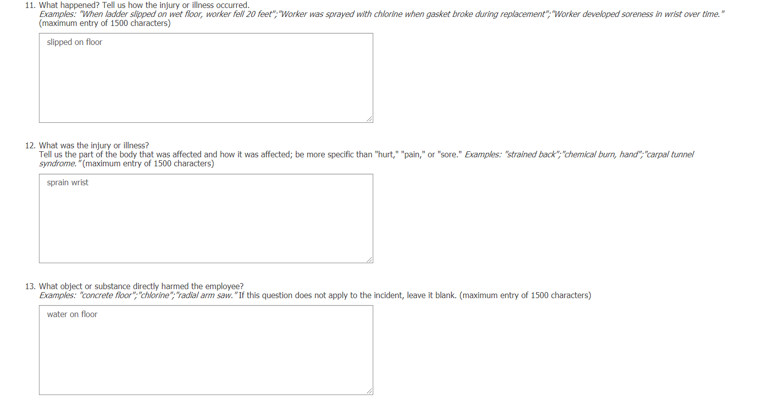 Section 1 & 2 if OSHA data not pulled in: