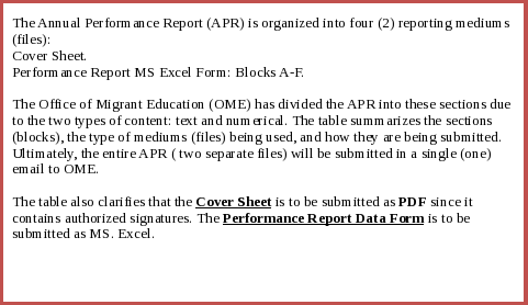 Note: Do not include requests for budget revisions, supplemental funding or changes to your application’s activities in this performance report. See Section F of the APR Instructions for details on the type of information you may provide below. |