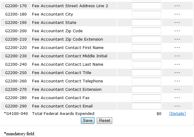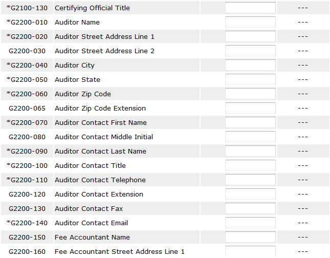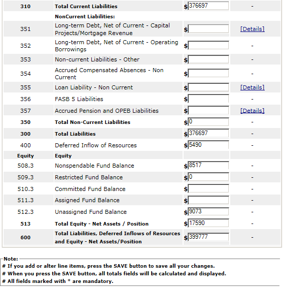 System Screens – Unaudited Financial Assessment Submission