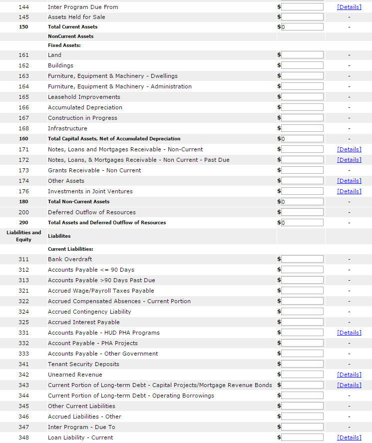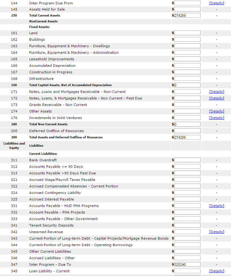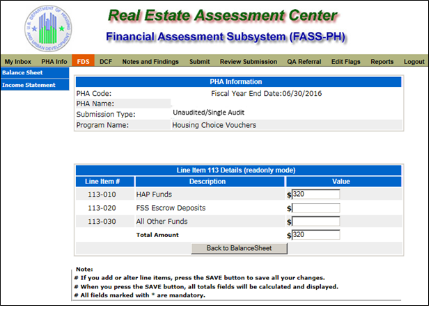 The following screen provides the detail link associated with the following FDS Line Item: 11170. This detail link is only applicable to the Housing Choice Voucher Program.