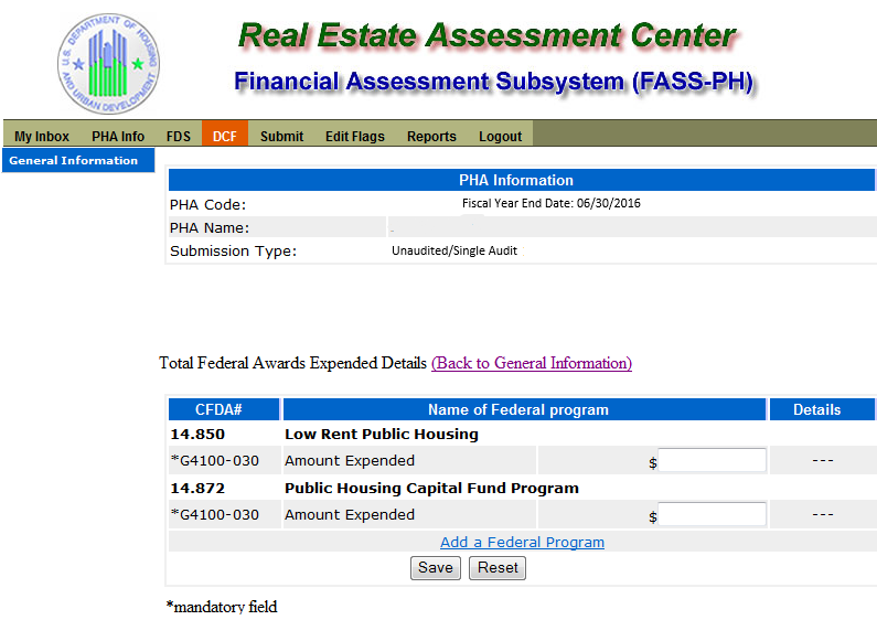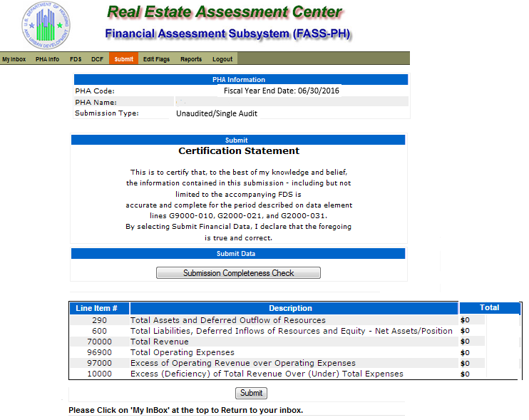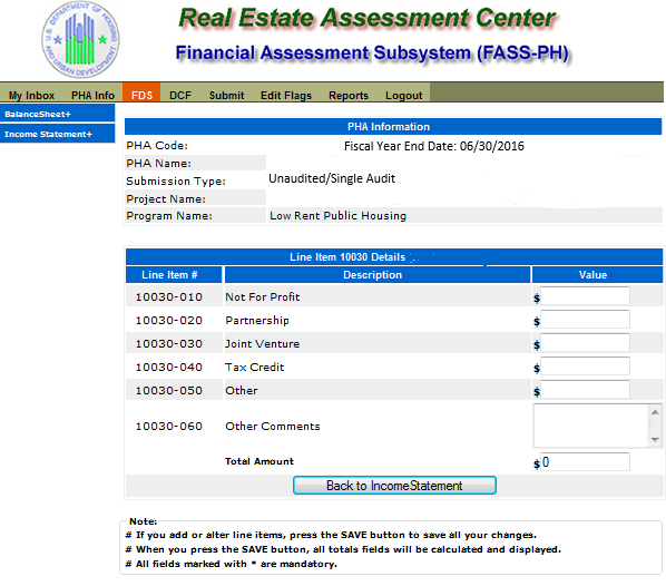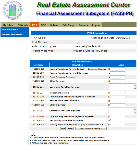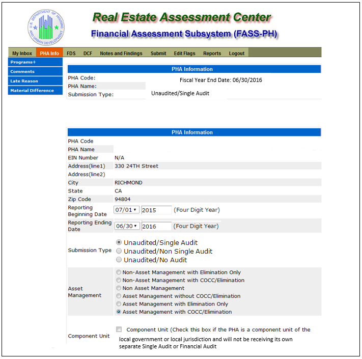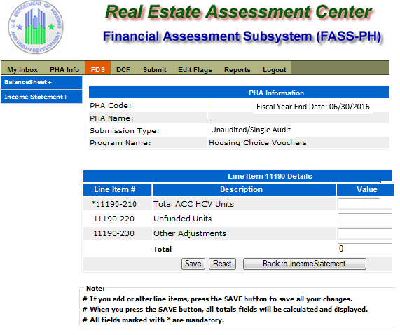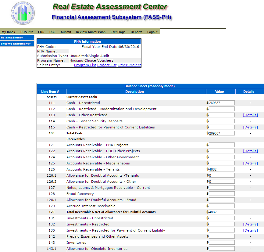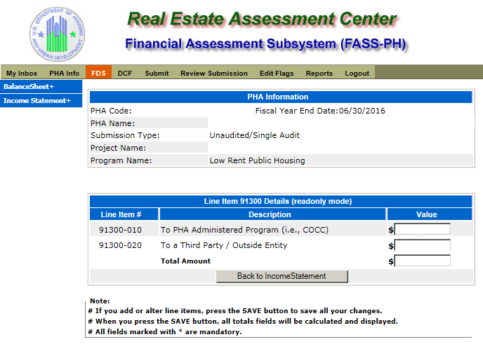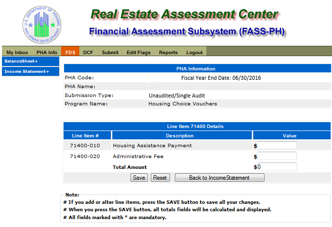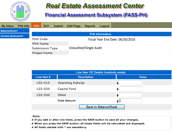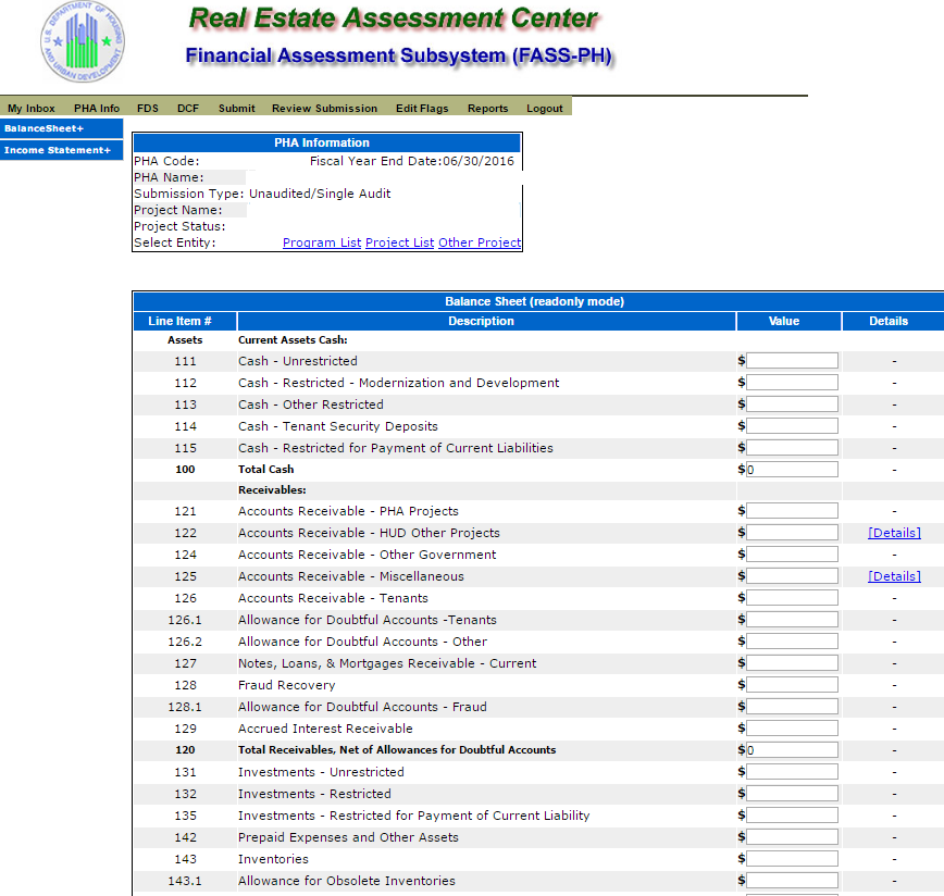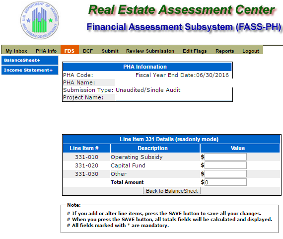 Unaudited Financial Assessment Subsystem-Public Housing (FASS-PH) Template