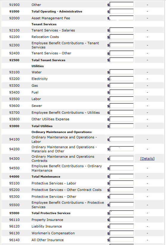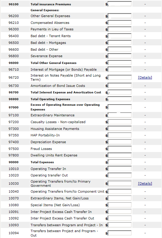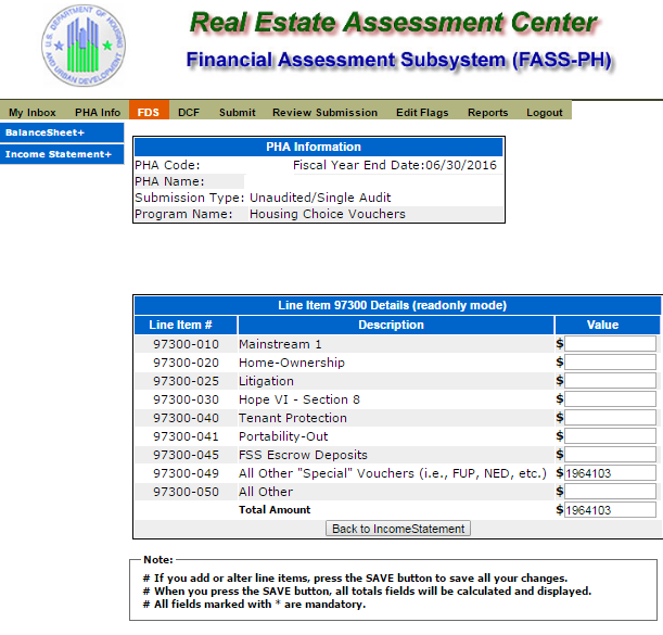 The following screen provides the detail link associated with the following FDS Line Item: 97300. This detail link is only applicable to the Housing Choice Voucher Program.
