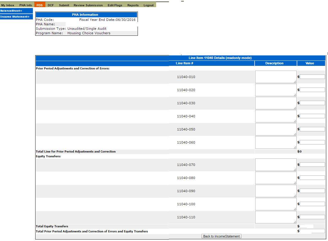 Unaudited Screen 14 – FDS Income Statement Page (HCV Program Detail Links) 33