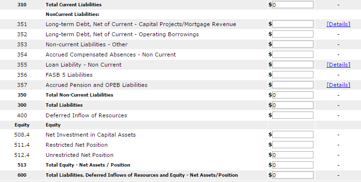 The following screen provides the detail link associated for the following FDS Line Item: 343. FDS Line Item 351 has a similar detail link.