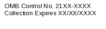 A federal agency may not conduct or sponsor, and a person is not required to respond to, nor shall a person be subject to a penalty for failure to comply with a collection of information subject to the requirements of the Paperwork Reduction Act unless that collection of information displays a currently valid OMB Control Number. The OMB Control Number for this information collection is 21XX-XXXX. Public reporting for this collection of information is estimated to be approximately 60 minutes per response, including the time for reviewing instructions, searching existing data sources, gathering and maintaining the data needed, and completing and reviewing the collection of information.