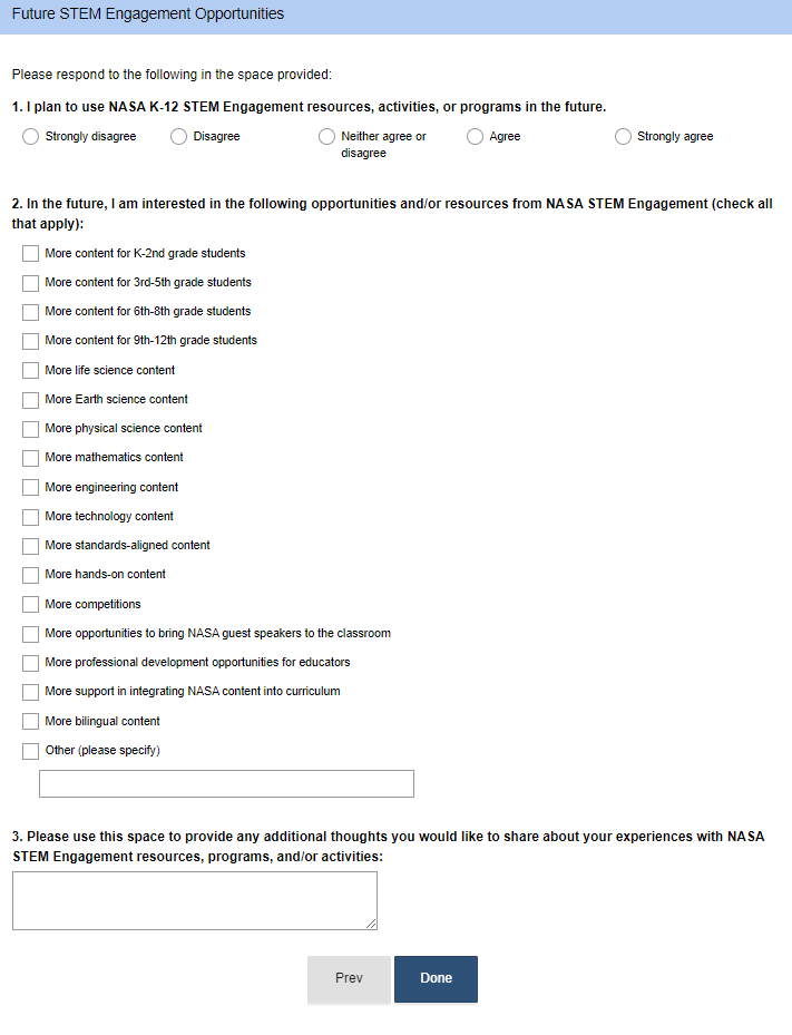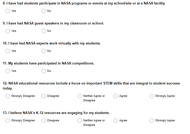 Generic Clearance for the NASA Office of Education Performance Measurement and Evaluation (Testing)