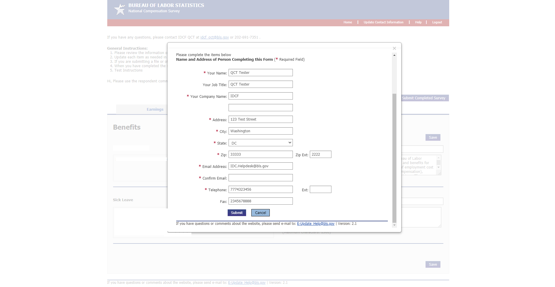 This application accessed through the IDCF Gatekeeper application that requires an account number and password to authenticate. This allows previously entered data to be displayed to the respondent when they enter the NCS E-Update application.