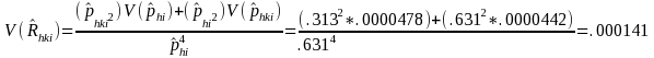 In this type of estimator, for industry i in an area, we are estimating the ratio, Rhki hat, of the total number of DAFW cases that have characteristic h to the number of cases that that have both characteristic h and characteristic k. For example, the proportion of the total number of DAFW cases in an industry that are male that fall within a certain range of number of days lost. We can express this ratio of two totals as the quotient of two statistically independent proportions: