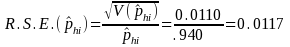 In this type of estimator, for an area, we are estimating the proportion, phi hat, of the total number of DAFW cases in industry i that have characteristic h. Under the assumption that the design effect is one and that the total DAFW case sample size for the industry is fixed, we can use the standard variance formula for simple random sampling without replacement to model the variances and relative standard errors for these proportions: