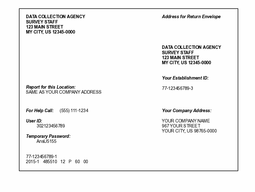 Use el sobre pre-dirigido para enviarnos el formulario completo- todo lo que nosotros le enviamos-dentro de los próximos 30 días después que su establecimiento lo haya recibido. Si el sobre pre-dirigido no está incluido, envíe todo el formulario a la dirección que aparece en la portada.