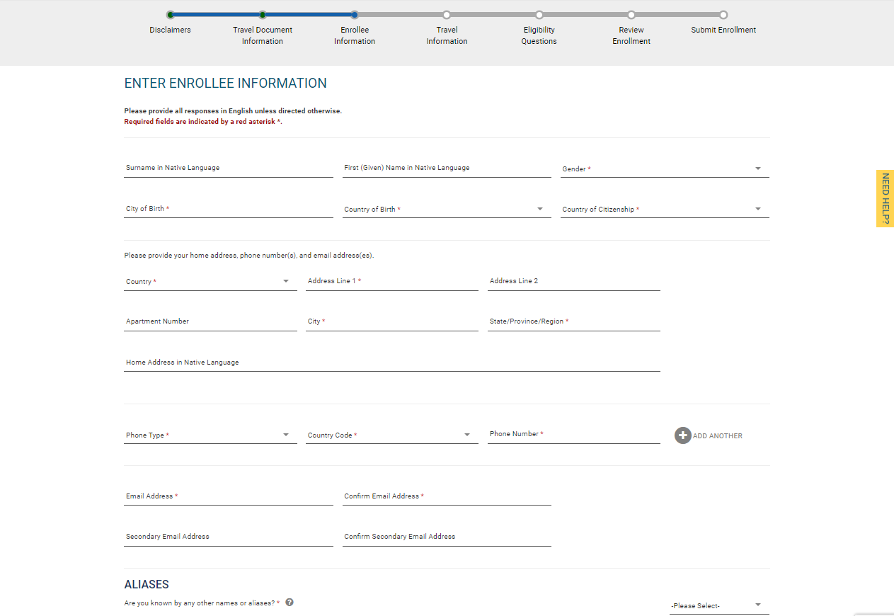 ENTER ENROLLEE INFORMATION