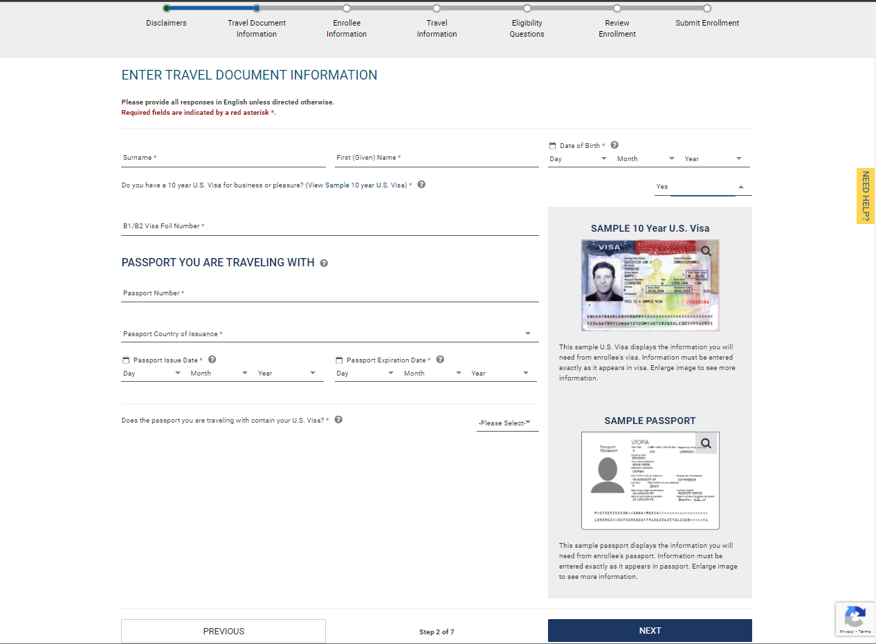 ENTER TRAVEL DOCUMENT INFORMATION