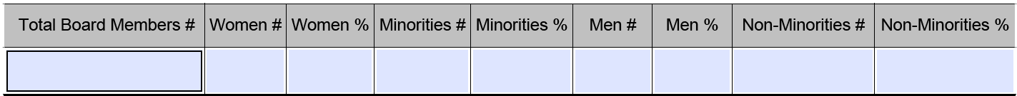3. What are the total numbers and percentages of women and minorities of the financial institutions ’Board of Directors for the period covered by this assessment?
