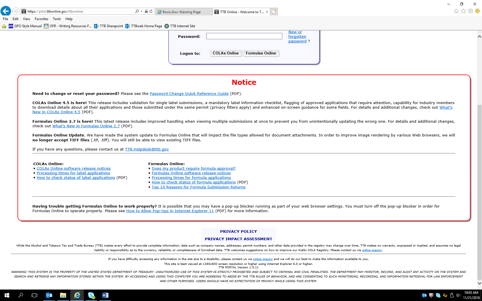 URL to Privacy Policy: https://www.ttb.gov/about/privacy_policy.shtml. URL to Privacy Impact Assessment: https://www.ttb.gov/foia/pia.shtml.