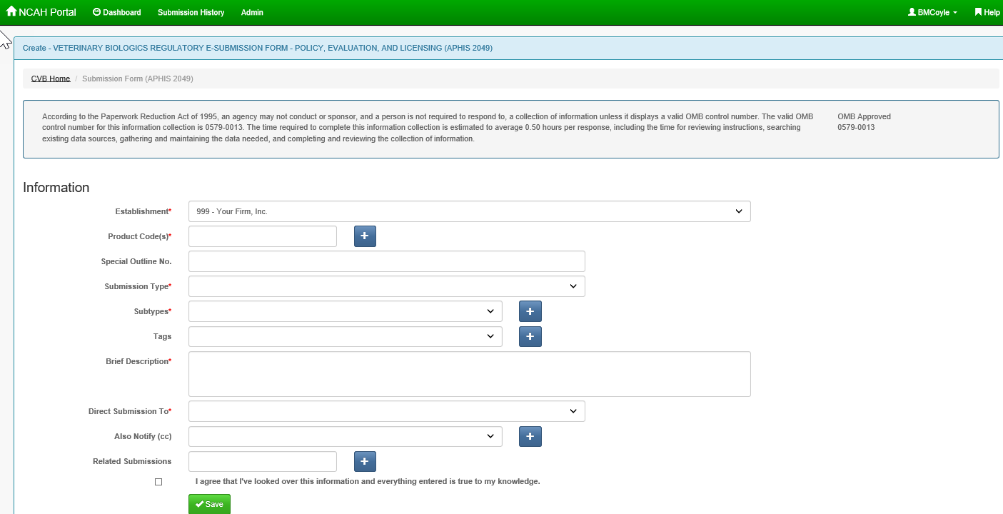 CVB has general guidance on how the NCAH Portal for CVB Submitters on the CVB website at https://www.aphis.usda.gov/aphis/ourfocus/animalhealth/veterinary-biologics/sa_ncah_portal_guidance/ct_cvb_portal_guidance