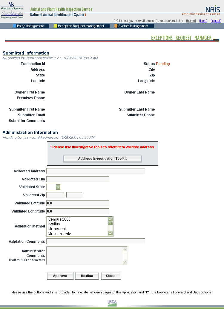 The premises identification databases provide a system that can issue premises identification numbers to locations where animals are raised (such as farms and ranches) and held for other purposes (such as markets and clinics). The States and Tribes administer the identification of premises within their geographic areas. APHIS has provided the Standardized Premises Identification System (SPIS) online information system for States and Tribes to use to do this. Forty-one States, seven Tribes, and two Territories currently use the SPIS. APHIS is responsible for its development, enhancement, maintenance, and operation.