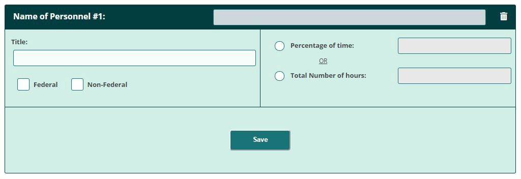In question 4 you will be asked to create a list of the names and titles of all key personnel. To get started, click the Add Personnel button.